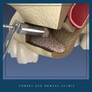 공간을 확보한 후, 그 안에 뼈 이식을 진행해
