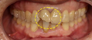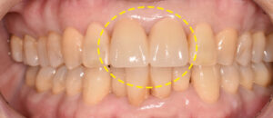 해당 환자분께서는 기존 앞니 보철 파절 선이 있으며,